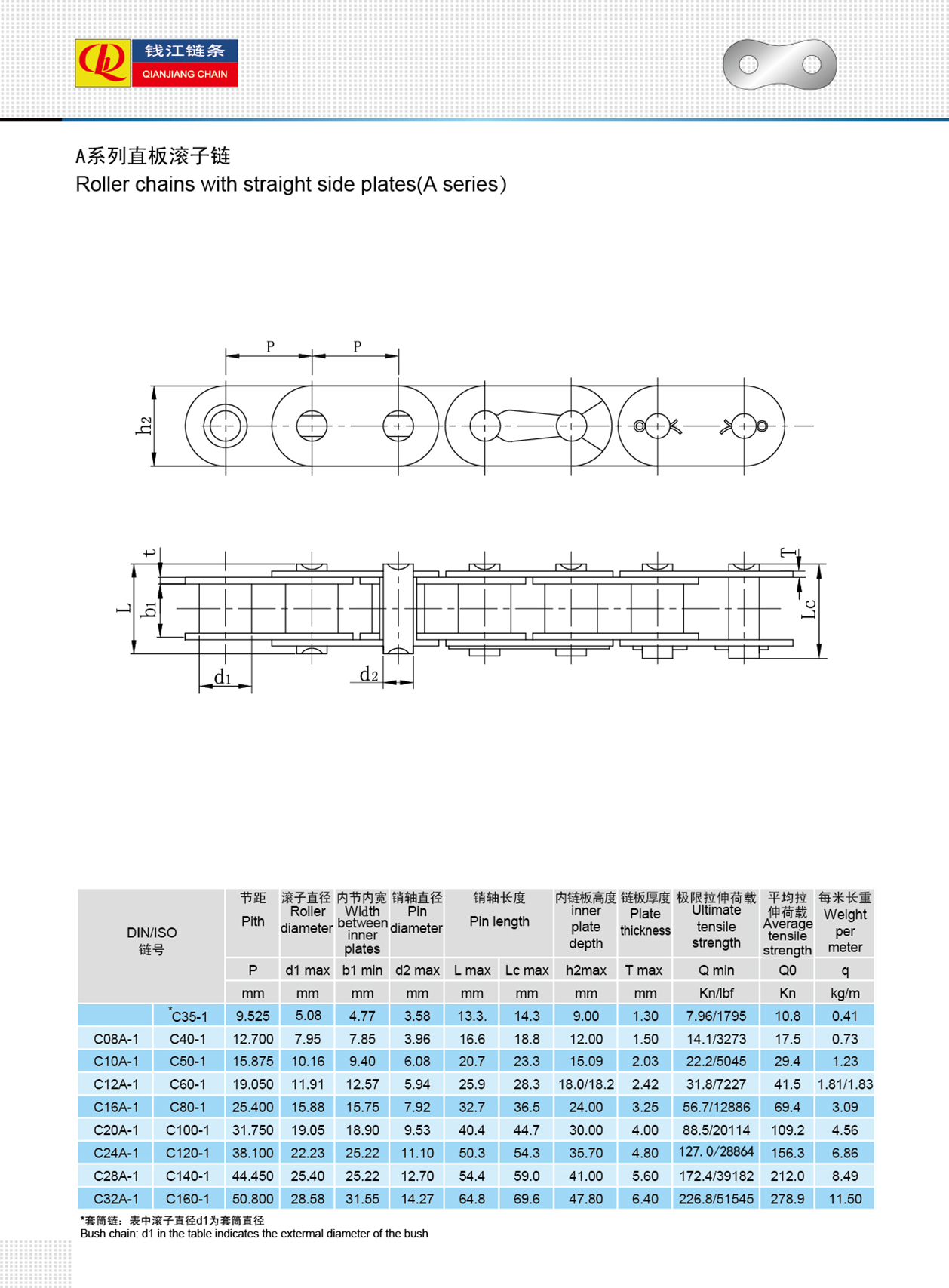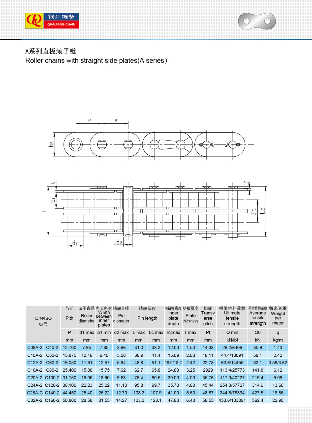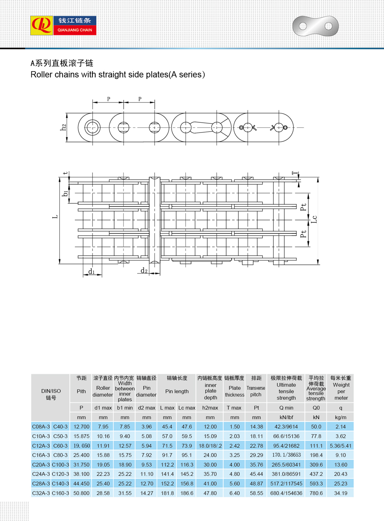 Düz yan plakalı makaralı zincirler (A serisi)