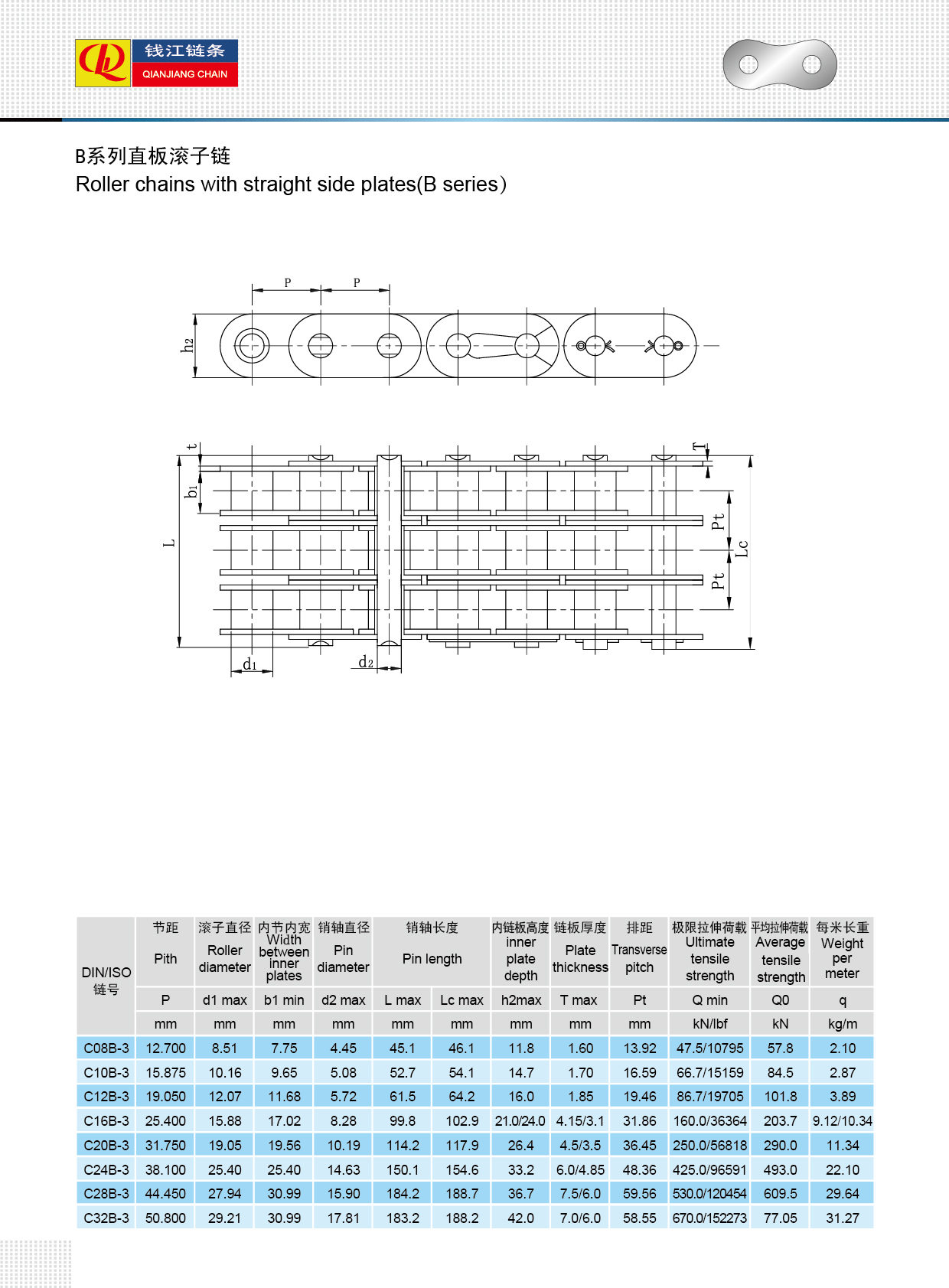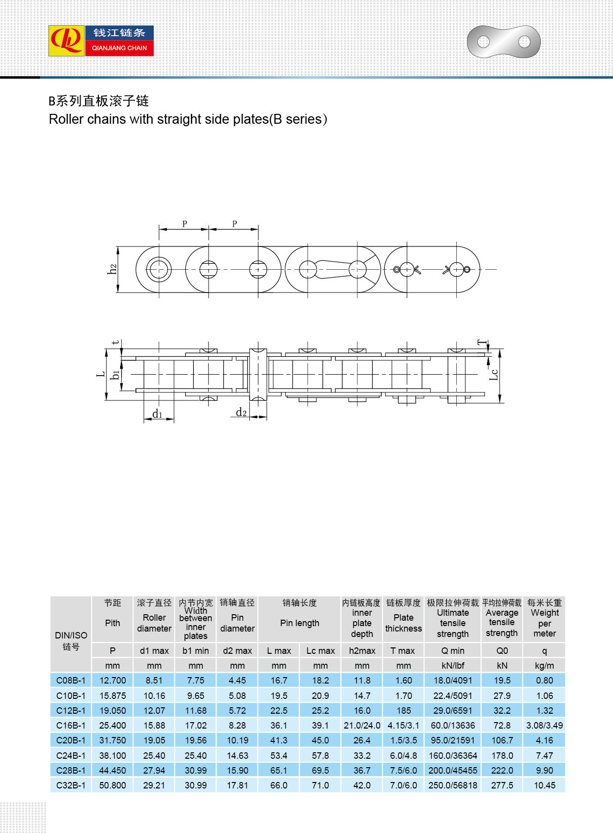Düz yan plakalı makaralı zincirler (B serisi)