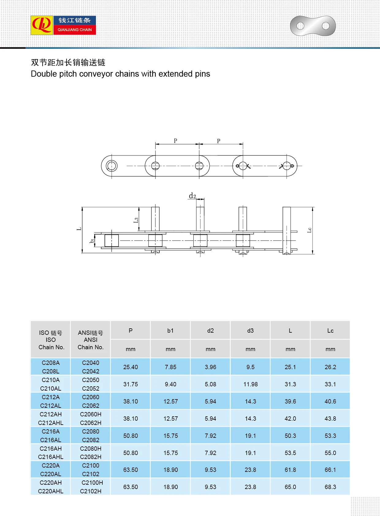 Uzatılmış pimlere sahip çift hatveli konveyör zincirleri