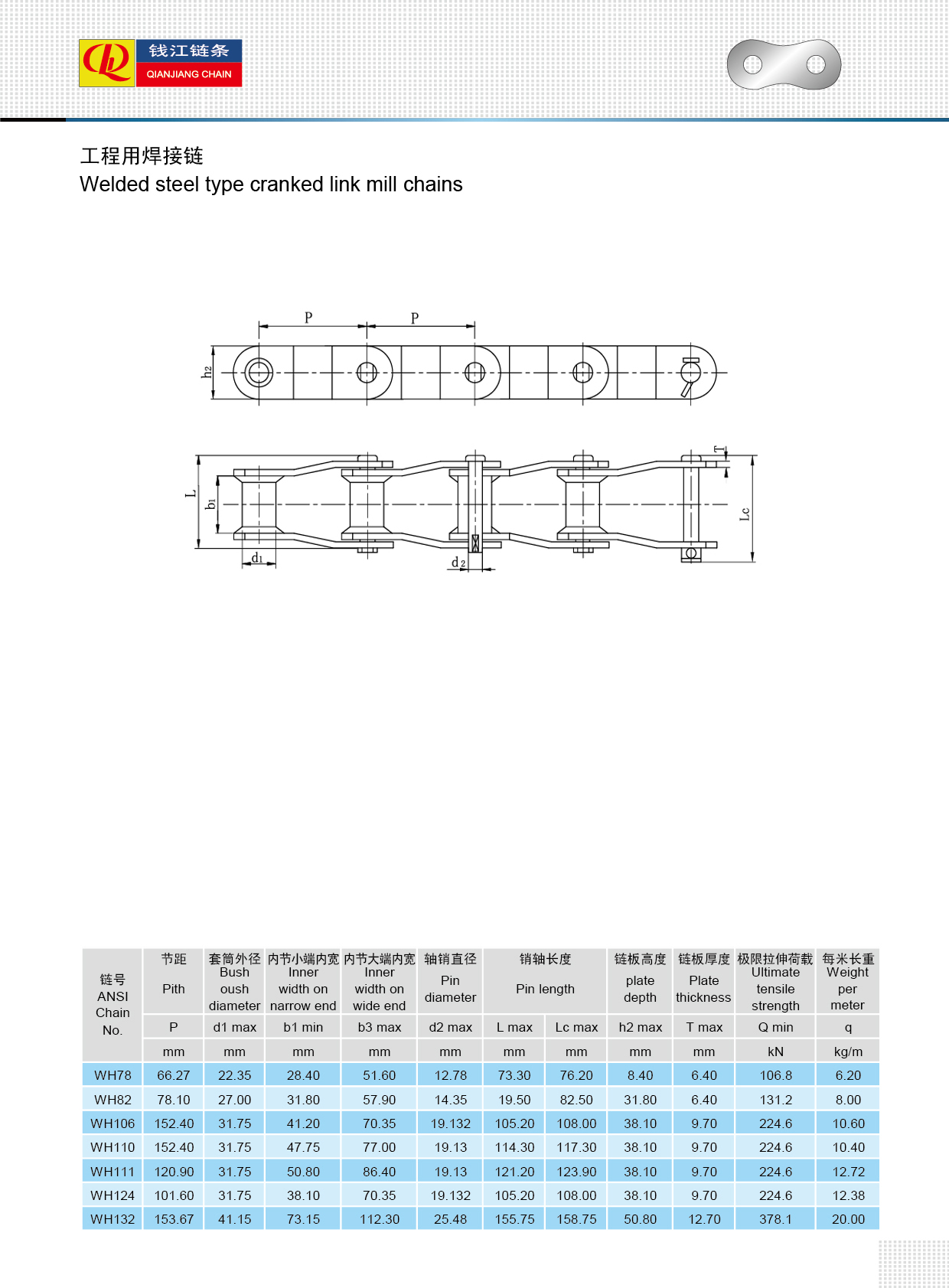 Kaynaklı çelik tip krank bağlantılı değirmen zincirleri
