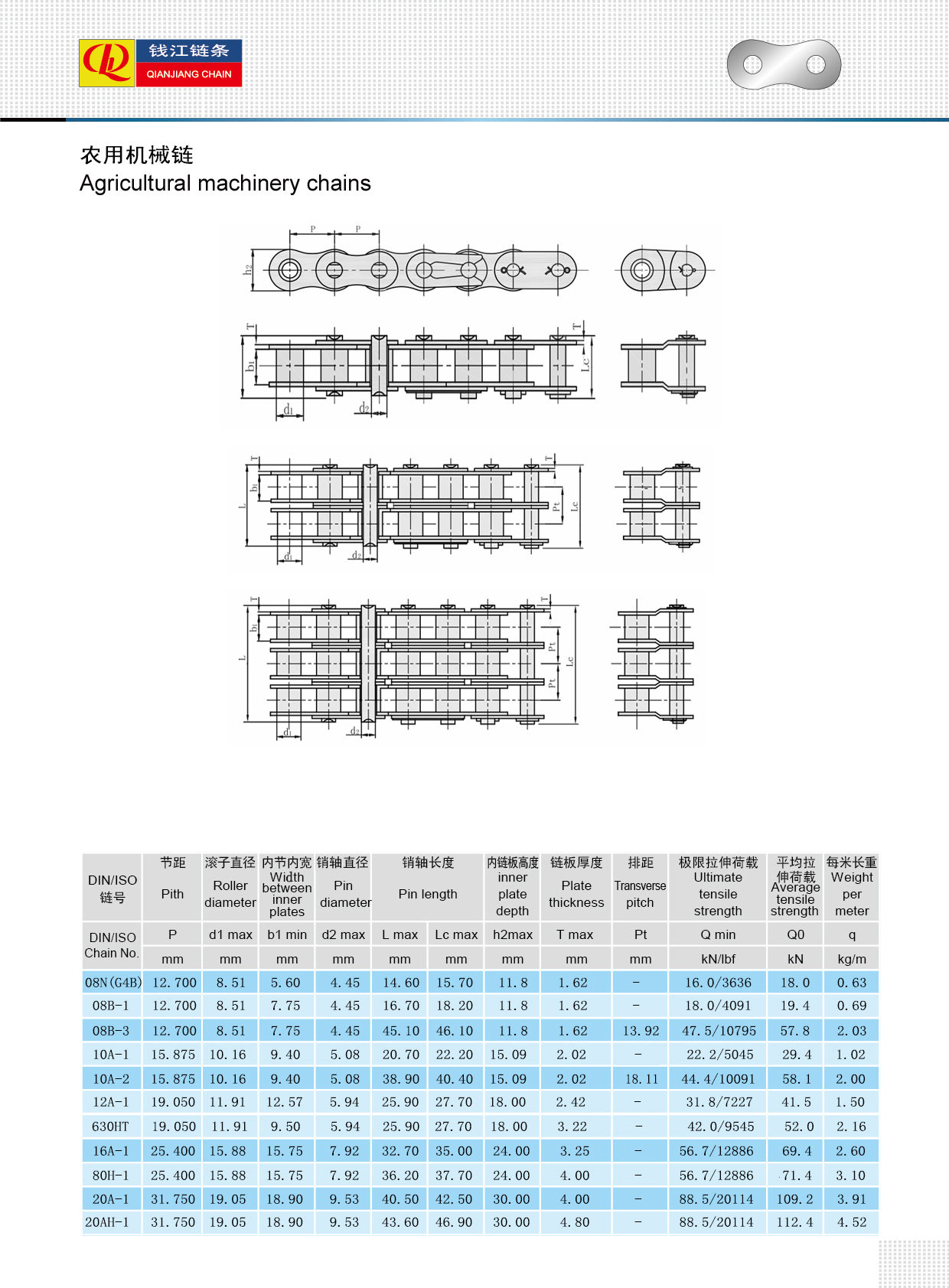 Çeşitli Özellikler Tarım makineleri zincirleri