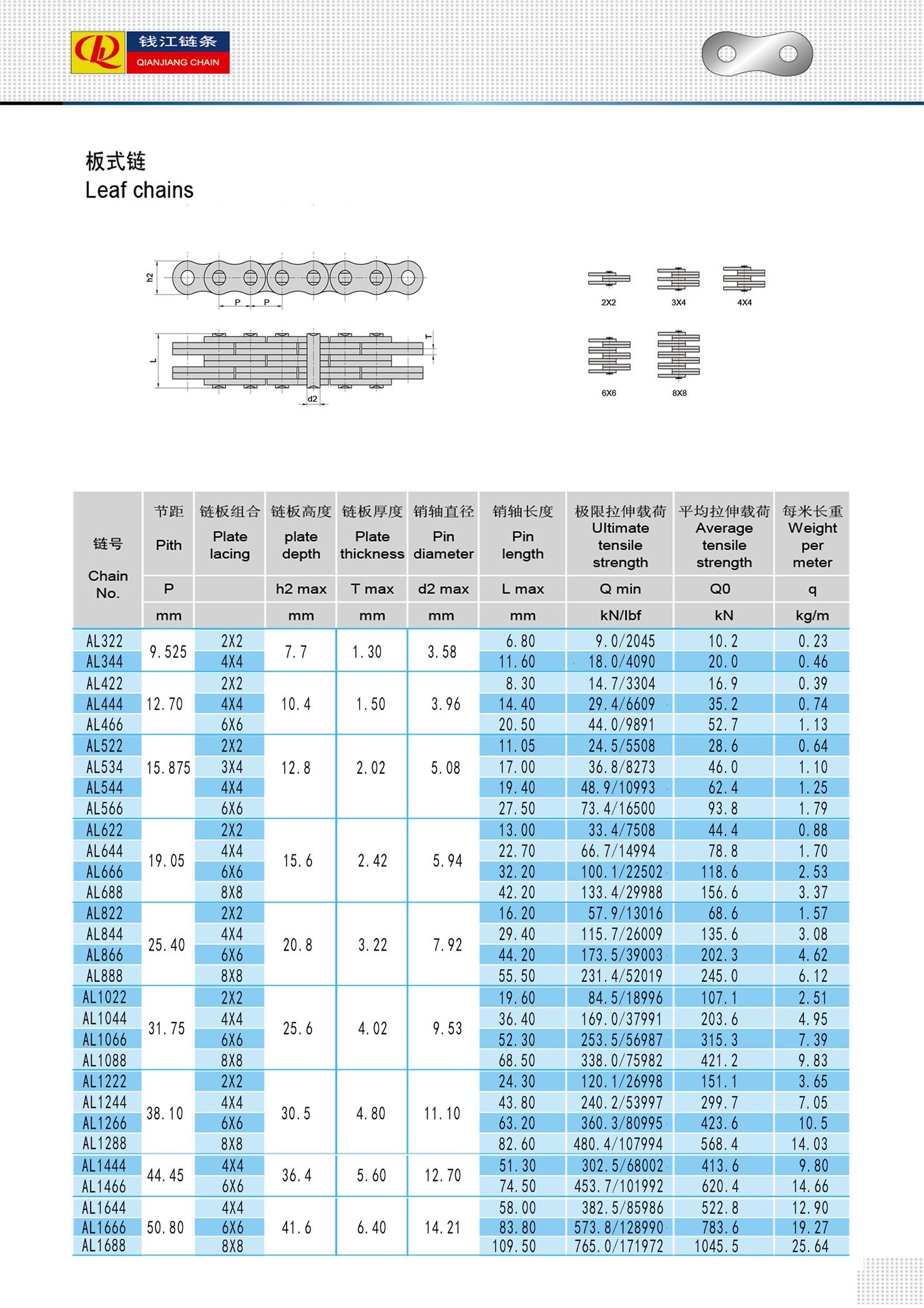 (AL Serisi) Endüstriyel sınıf yüksek gerilimli yaprak zincirler