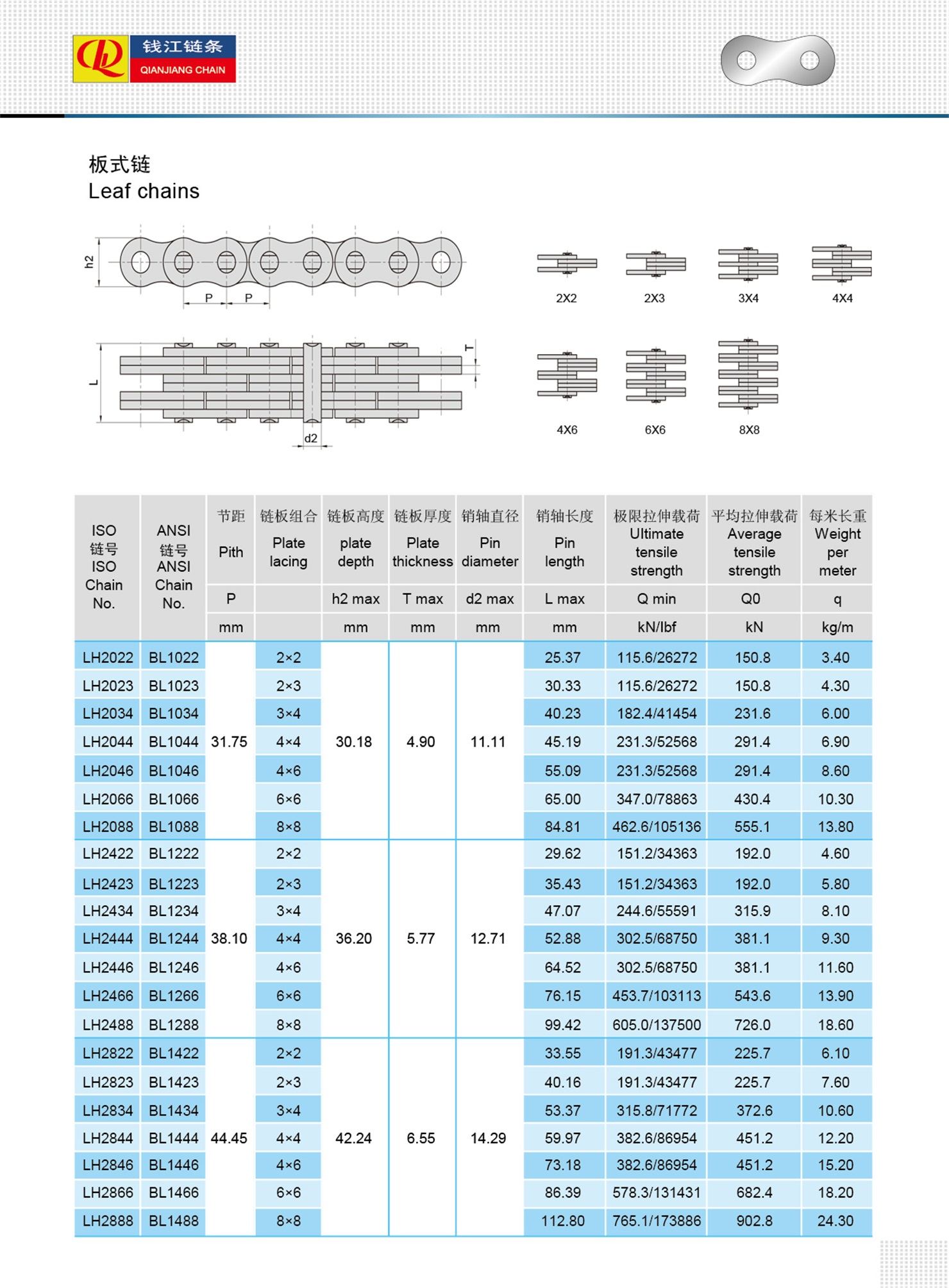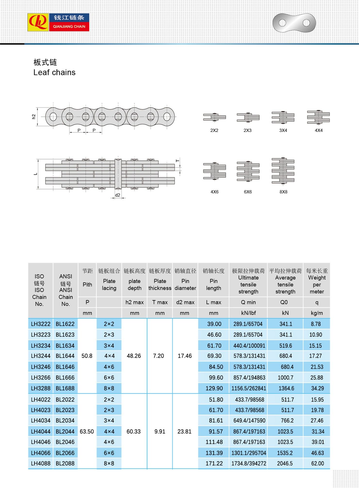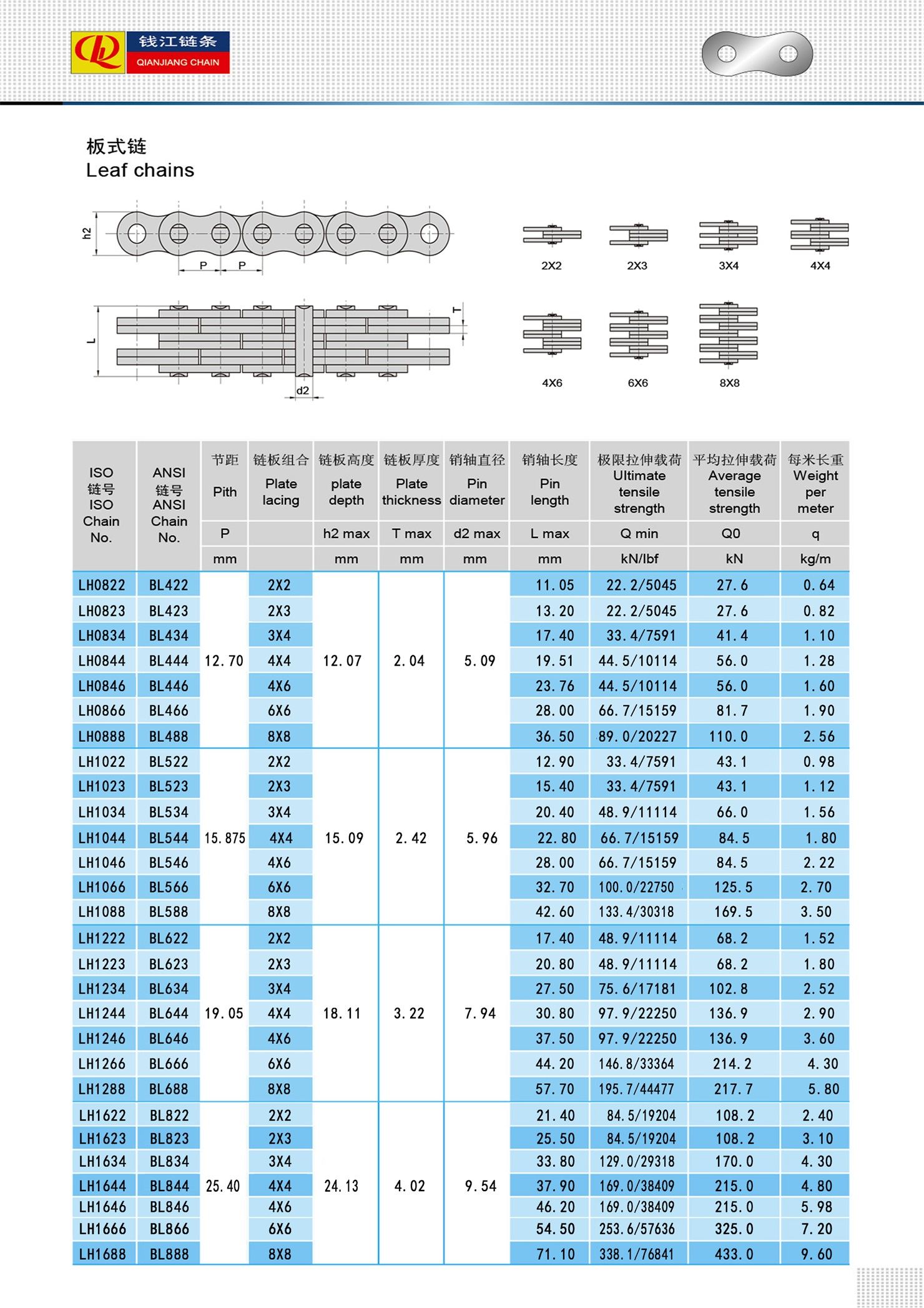 LH (BL Serisi) aşınmaya dayanıklı dayanıklı Yaprak zincirler