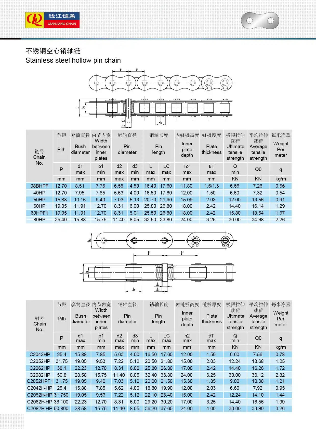 Paslanmaz çelik içi boş pimli zincirler