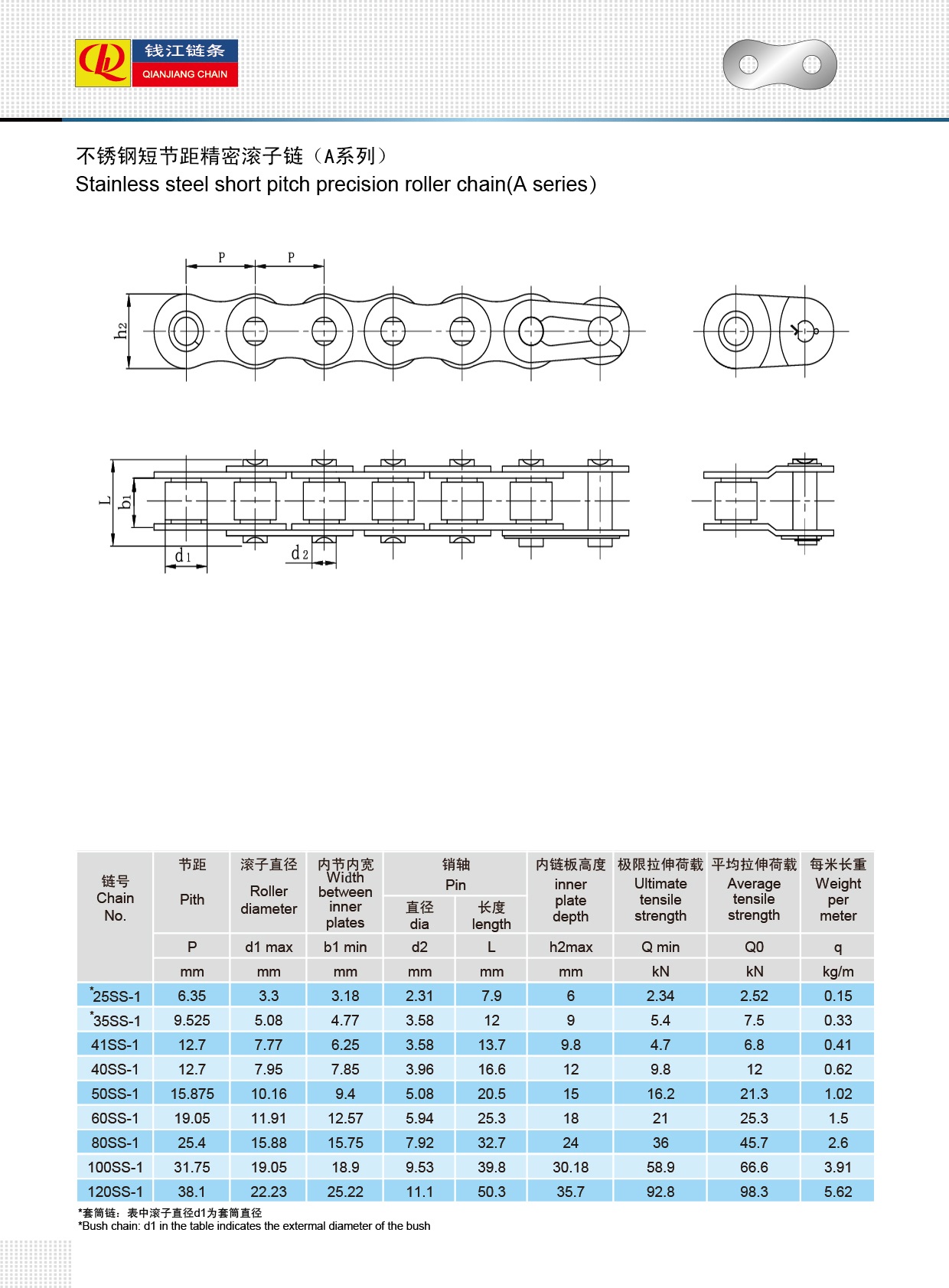 Paslanmaz çelik kısa adımlı hassas makaralı zincirler